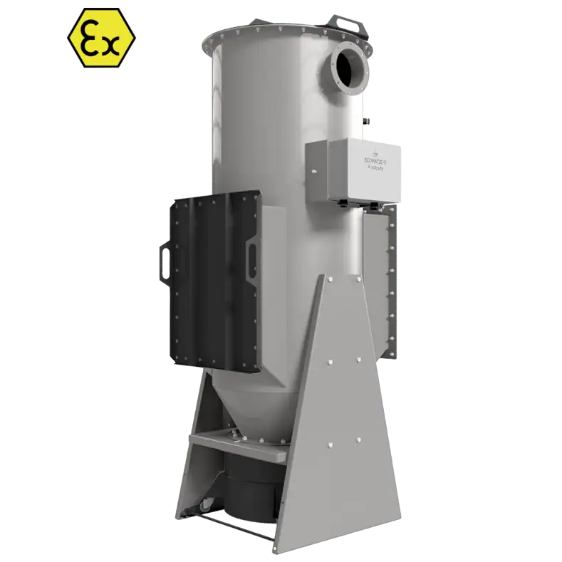 - ATEX-Zertifizierung: Die Filteranlagen sind nach den Anforderungen der gewählten ATEX-Zone gefertigt und werden ab Werk mit ATEX-Zertifikat geliefert.